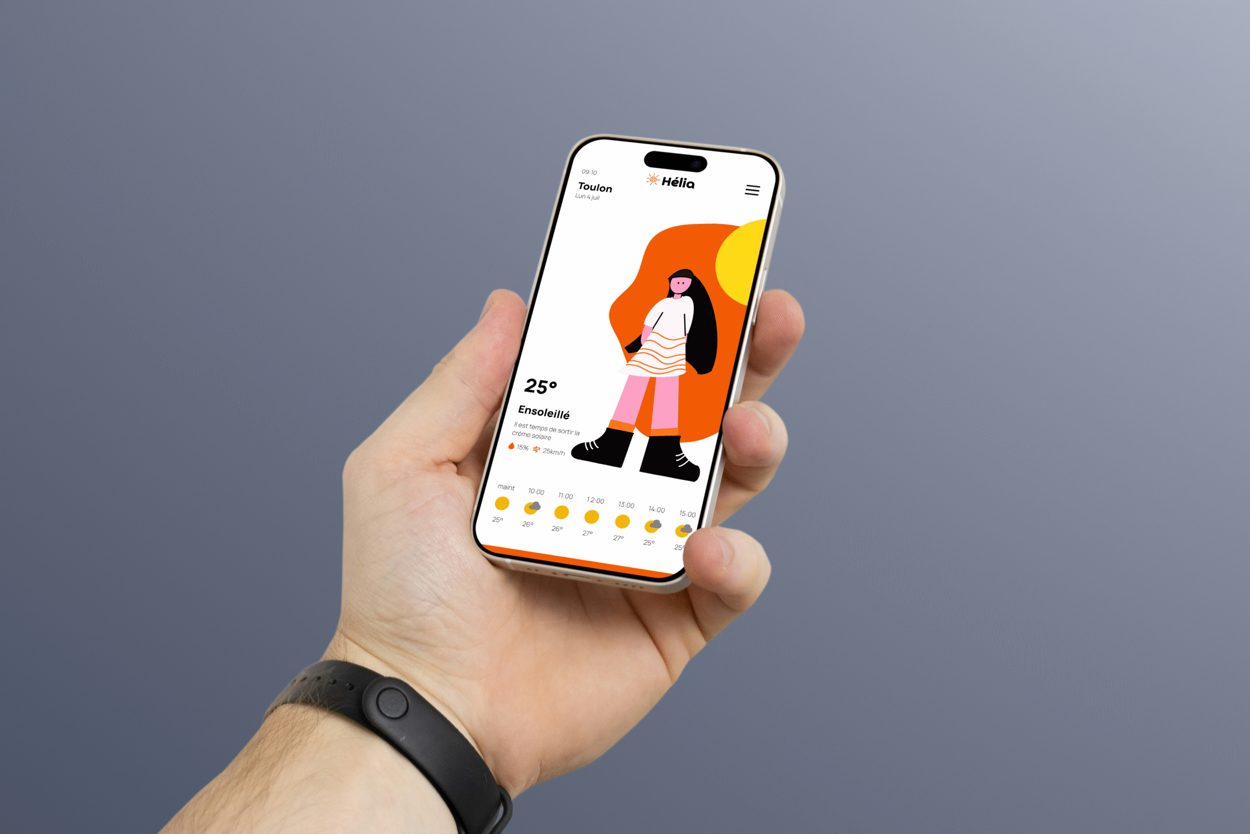 Dans le cadre d’un projet fictif, j’ai réalisé la création complète de l’application météo Hélia. J’ai conçu l’interface utilisateur et l’expérience utilisateur (UI/UX) sur Figma, puis réalisé une vidéo promotionnelle animée avec After Effects, incluant des animations graphiques pour mettre en valeur les fonctionnalités principales.